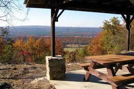 A scenic public overlook from the brow of Lookout Mountain. Picnic tables and covered pavilions available.